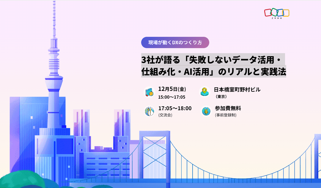 2025年12月5日(金)開催のゾーホージャパン主催ウェビナーにて、「LINEとアプリでつなぐ“データの生態系”── CRM×AIで顧客体験を進化させる」をテーマに弊社代表・田中が登壇します.