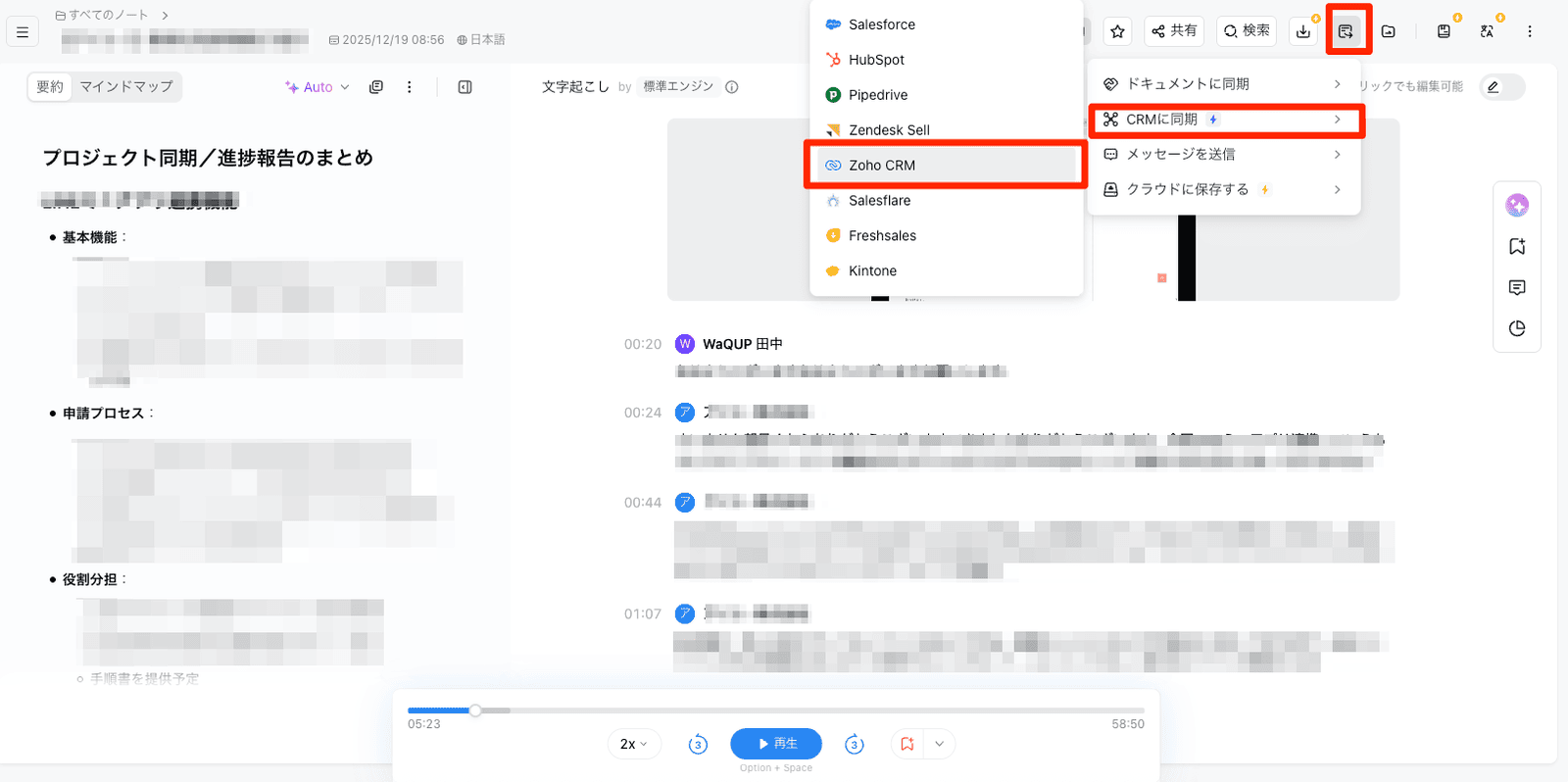 2)Notta の文字起こし・AI要約を Zoho CRM に転送する